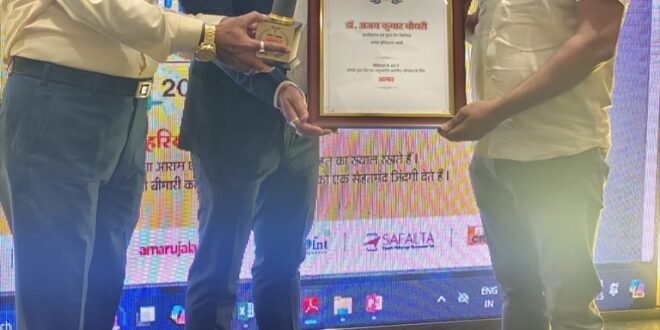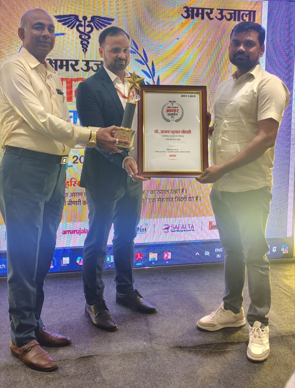 बस्ती। उत्तर प्रदेश के उप मुख्यमंत्री एवं स्वास्थ्य मंत्री ब्रजेश पाठक ने गोरखपुर में आयोजित एक कार्यक्रम में चिकित्सा और स्वास्थ्य के क्षेत्र में गरीबों की मदद में सबसे पहले आगे आने वाले अनंता हार्ट एंड कैंसर हास्पिटल के डायबिटीज एवं हृदय रोग विशेषज्ञ डा. अजय कुमार चौधरी को बेहतर समर्पण व उललेखनीय कार्यों के लिये बेस्ट अवार्ड से सम्मानित किया गया। उन्हें पहले भी कई अन्य संस्थाओं से भी अवार्ड मिल चुके है