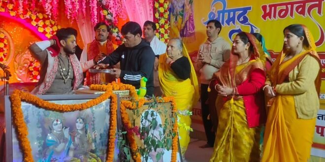 संतकबीरनगर-:भिटहा स्थित चतुर्वेदी विला में नौ दिवसीय श्रीमद् भागवत कथा के दूसरे दिन श्रद्धा और भक्ति का अद्भुत संगम देखने को मिला। वृंदावन धाम से पधारे विद्वान आचार्य श्री त्रिभुवन दास जी महाराज ने अपने ओजस्वी प्रवचन में बताया कि 18 हजार श्लोकों वाला श्रीमद् भागवत पुराण जन्म से लेकर मोक्ष तक के सभी रहस्यों को समेटे हुए है। उन्होंने कहा कि पुराण के प्रथम श्लोक का आरंभ “जन्म” शब्द से और अंतिम श्लोक “परम” शब्द पर समाप्त होना स्वयं बताता है कि मानव जीवन की संपूर्ण यात्रा का सार भागवत में निहित है। आचार्य ने बताया कि श्रीमद् भागवत कथा भगवान की वाणी है, जिसमें वेदों का सार और गायत्री मंत्र की पौराणिकता समाहित है। गायत्री मंत्र के “धीमहि” शब्द का उल्लेख भी भागवत की दिव्य वाणी में मिलता है, जो इसकी प्रामाणिकता और महिमा को और भी अद्वितीय बनाता है। उन्होंने भक्तों को सत्य को ईश्वर का स्वरूप बताते हुए इसके दो रूपों का भी विशद वर्णन किया। भव्य आरती के साथ कथा का शुभारंभ