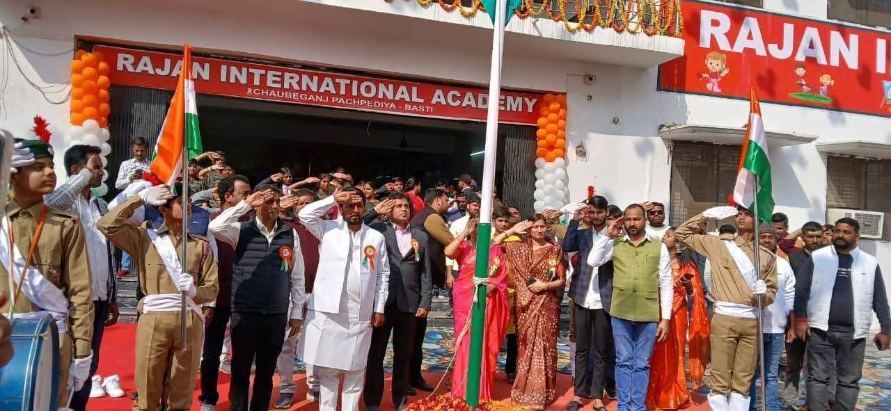 बस्ती। राजन इंटरनेशनल एकेडमी में गणतंत्र दिवस समारोह अत्यंत हर्षोल्लास, अनुशासन एवं देशभक्ति के वातावरण में मनाया गया। विद्यालय परिसर को तिरंगे झंडों, रंग-बिरंगे गुब्बारों, देशभक्ति स्लोगन एवं राष्ट्रीय प्रतीकों से आकर्षक रूप से सजाया गया था। सुबह से ही विद्यालय में छात्रों, शिक्षकों एवं अभिभावकों में विशेष उत्साह देखने को मिला।