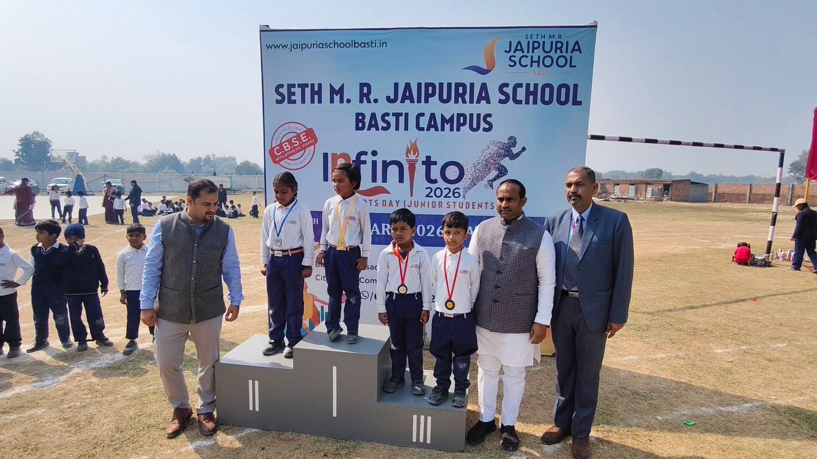 बस्ती। शनिवार को सेठ एम आर जयपुरिया स्कूल बस्ती में वार्षिक स्पोर्ट्स डे का भव्य आयोजन किया गया। खेलकूद प्रतियोगिताओं और सांस्कृतिक प्रस्तुतियों से सजा यह आयोजन विद्यार्थियों, अभिभावकों और शिक्षकों के लिए उत्साह और ऊर्जा से भरपूर रहा। कार्यक्रम का उद्घाटन महादेवा के पूर्व विधायक रवि सोनकर ने दीप प्रज्वलित कर किया।
