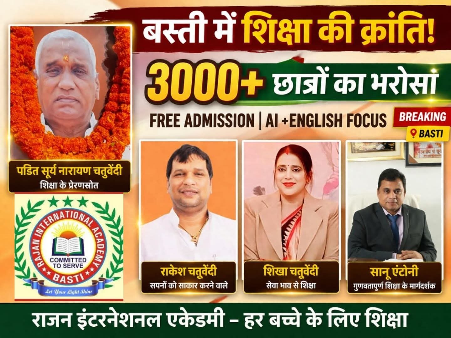 इसी सोच को साकार रूप देते हुए वर्ष 2021 में चौबेगंज स्थित राजन इंटरनेशनल एकेडमी की स्थापना की गई। शुरुआत से ही इस संस्थान ने शिक्षा के क्षेत्र में एक अलग पहचान बनाई। सबसे खास बात यह रही कि प्रवेश शुल्क पूरी तरह निःशुल्क रखा गया, जिससे आर्थिक रूप से कमजोर परिवारों के बच्चों को भी बेहतर शिक्षा का अवसर मिल सके। इसके साथ ही कॉपी-किताब पर 50 प्रतिशत की छूट देकर एक नया उदाहरण पेश किया गया।