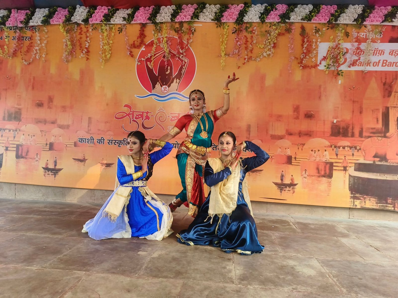 कथक गुरु मास्टर शिव (लखनऊ घराना) के नेतृत्व में पश्चिम बंगाल से पधारीं सृजिता सरकार, तनिमा सरकार और शालिनी ने मंच पर अपनी कला का प्रदर्शन किया। कार्यक्रम का आकर्षण शिव तांडव, शिव स्तुति और शिव वंदना रही। सृजिता सरकार ने जहाँ भरतनाट्यम की बारीकियों से दर्शकों को रूबरू कराया, वहीं तनिमा और शालिनी ने कथक की मोहक प्रस्तुति दी। कलाकारों की जुगलबंदी और पदचाप की धमक पर घाट पर मौजूद कला प्रेमियों ने तालियों की गड़गड़ाहट से आशीर्वाद प्रदान किया