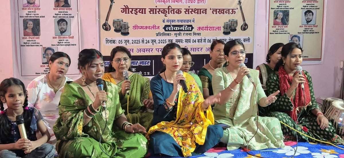 बस्ती। प्रेस क्लब सभागार में उत्तर प्रदेश संगीत नाटक अकादमी, लखनऊ के तत्वावधान में चल रहे ग्रीष्मकालीन लोकगीत कार्यशाला में प्रशिक्षार्थियों ने गुरुवार को शानदार प्रस्तुति दी। पंद्रह दिवसीय इस कार्यशाला में जनपद के विभिन्न क्षेत्रों से आये प्रतिभागी बालक – बालिकाओं और महिलाओं ने पारंपरिक लोकगीतों की बारीकियां सीखी और मंच पर शानदार प्रस्तुति दी।