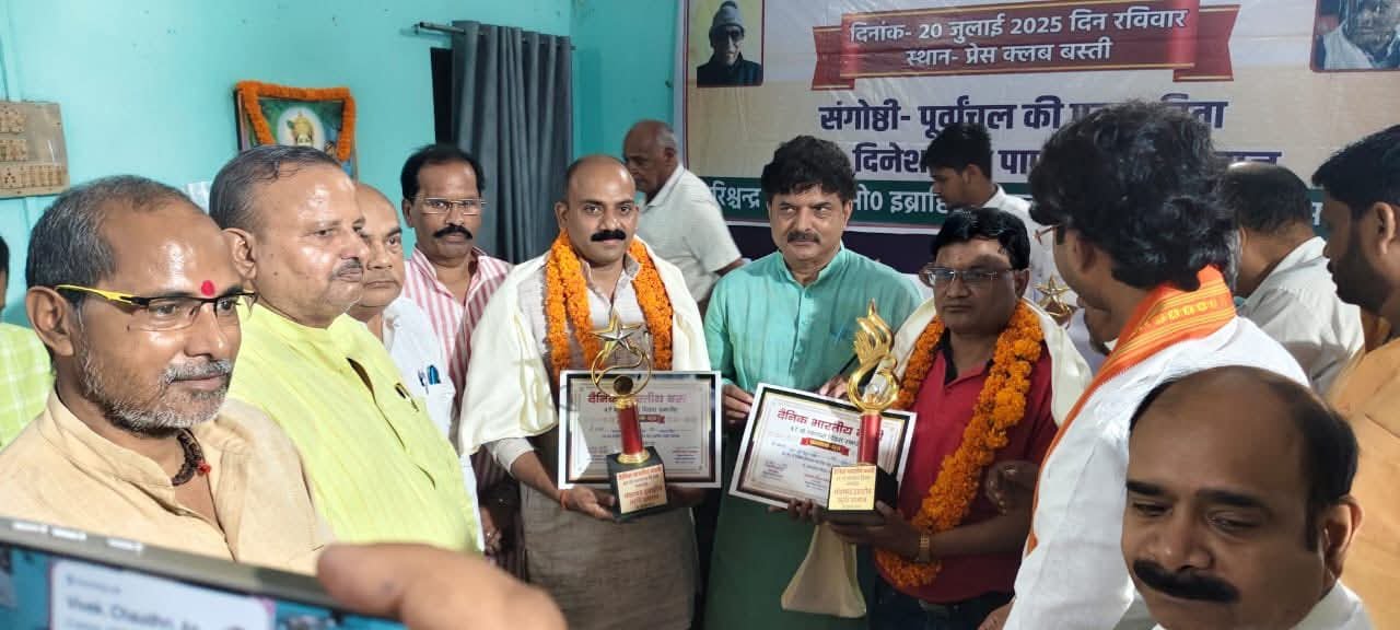 बस्ती। दैनिक भारतीय बस्ती का 47 वां स्थापना दिवस प्रेस क्लब सभागार में संकल्पों के साथ मनाया गया। इस अवसर पर डा. वी.के. वर्मा, अजय कुमार पाण्डेय, कृष्णदेव मिश्र, सज्जाद रिजवी, राजेश कुमार पाण्डेय ’गांधियन, सुनील कुमार भट्ट, वीरेन्द्र गोस्वामी, देवेन्द्र पाण्डेय, विवेक कुमार मिश्र, जय प्रकाश गोस्वामी, राजेश कुमार पाण्डेय, को हरिश्चन्द्र अग्रवाल, मो. इब्राहिम, हीरालाल गुप्ता स्मृति सम्मान से अतिथियों द्वारा सम्मानित किया गया।