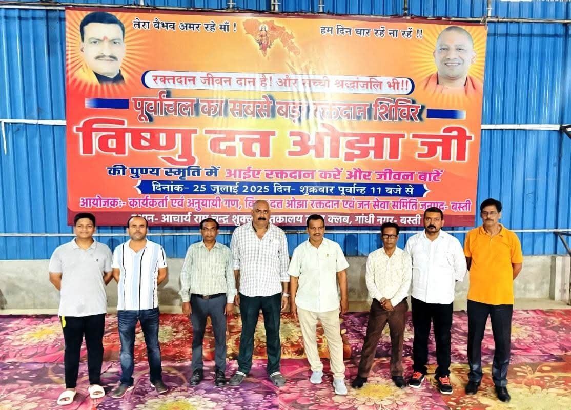 बस्ती । भारतीय जनता पार्टी युवा मोर्चा के पूर्व जिला और मण्डल अध्यक्ष, मण्डलीय गौरक्षा समिति के संस्थापक, एवं योगी आदित्यनाथ के अनन्य सहयोगी, हिन्दू युवा वाहिनी उ.प्र. के स्थापन प्रदेश संयोजक स्वर्गीय विष्णुदत्त ओझा के 14 वीं पुण्य तिथि पर आगामी 25 जुलाई शुक्रवार को आचार्य रामचन्द्र शुक्ल पुस्तकालय एवं वाचनालय टाउन क्लब के परिसर में दिन में 11 बजे से रक्तदान शिविर का आयोजन किया गया है।